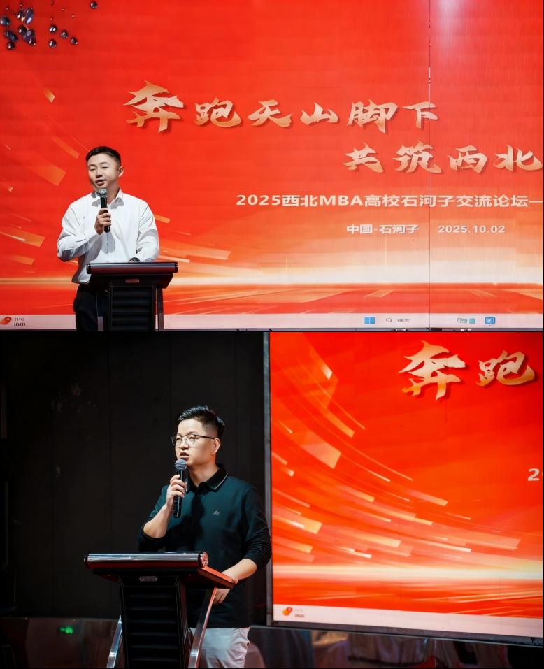 在之后举行的MBA交流会中,张亚鹏老师与新疆大学MBA联合会主席陈鑫分别致辞,对主办方的周密安排表示衷心感谢,并对参与同学们的表现给予高度评价。