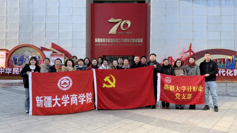 11月26日上午,为进一步丰富主题党日活动形式,感受自治区高质量发展的浩荡磅礴,商学院与校计划财务处携手组织开展了以“感受辉煌成就,奋进正当其时”为主题的联合主题党日活动,共同前往“六馆一心”参观学习自治区70周年成就展,双方单位共计20余名党员参加了此次活动。