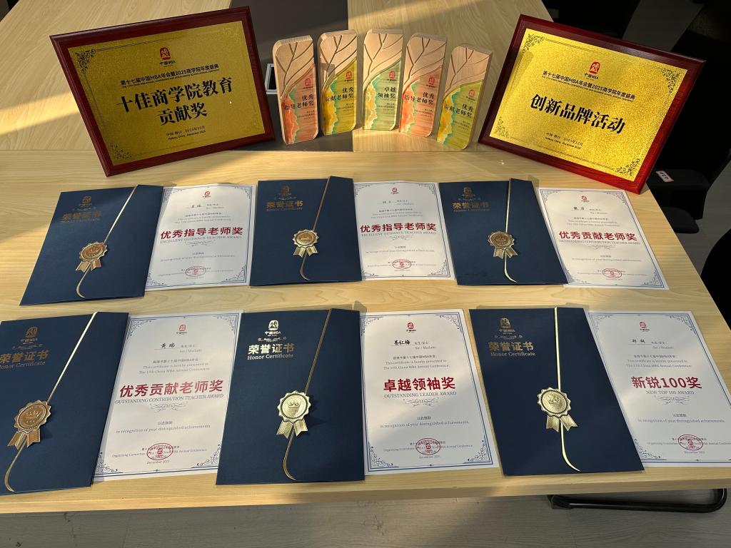 本届年会评选中,新大商学院获 “十佳商学院教育贡献奖”,学院品牌活动获评“创新品牌活动”;易红梅院长获“卓越领袖奖”,张力、黄瑞老师获评“优秀贡献老师奖”,郑朔获“新锐100奖”,安娜获评“优秀干部奖”。20日晚颁奖典礼上,师生代表上台领奖,并与兄弟院校深入交流,搭建合作桥梁。